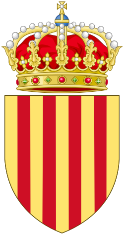 Kort efter (1137) fusionerede kongerne af Aragonien og greverne af Barcelona under et enkelt dynasti, som var greverne af Barcelona, men som første titel blev konge af Aragonien af hensyn til protokolær overlegenhed. Flaget blev derefter meget udbredt som flag for Kongeriget Aragonien, både før og efter personalunionen med Kongeriget Castilla y León (1492), indtil afslutningen af den spanske arvefølgekrig (1714), hvorved alle særlige rettigheder for territorier, der støttede den besejrede tronprætendent (ærkehertug Karl af Habsburg) blev afskaffet.